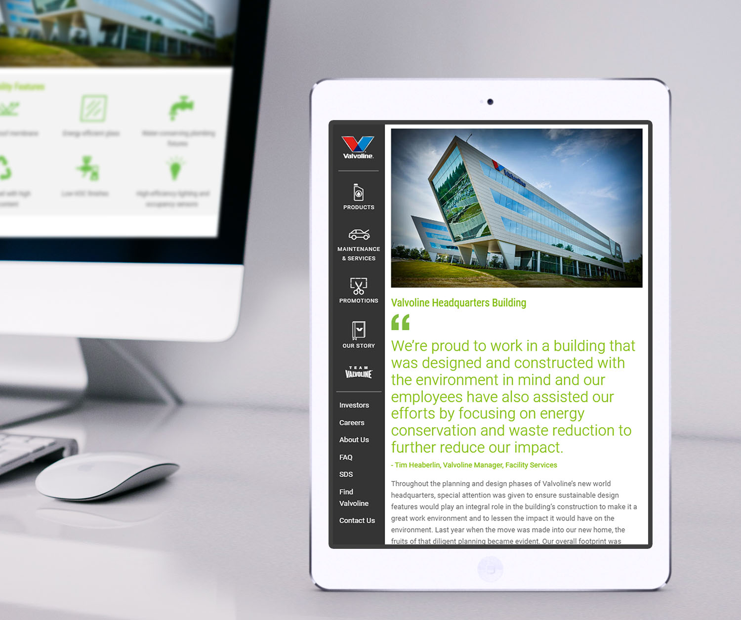 When we were selected to help bring those stories to life, we decided to start with a little elbow grease. So we popped open the hood, immersed ourselves in the Valvoline brand, benchmarked other CSR reports, conducted stakeholder interviews, and initiated a plan to put Valvoline’s best foot forward.