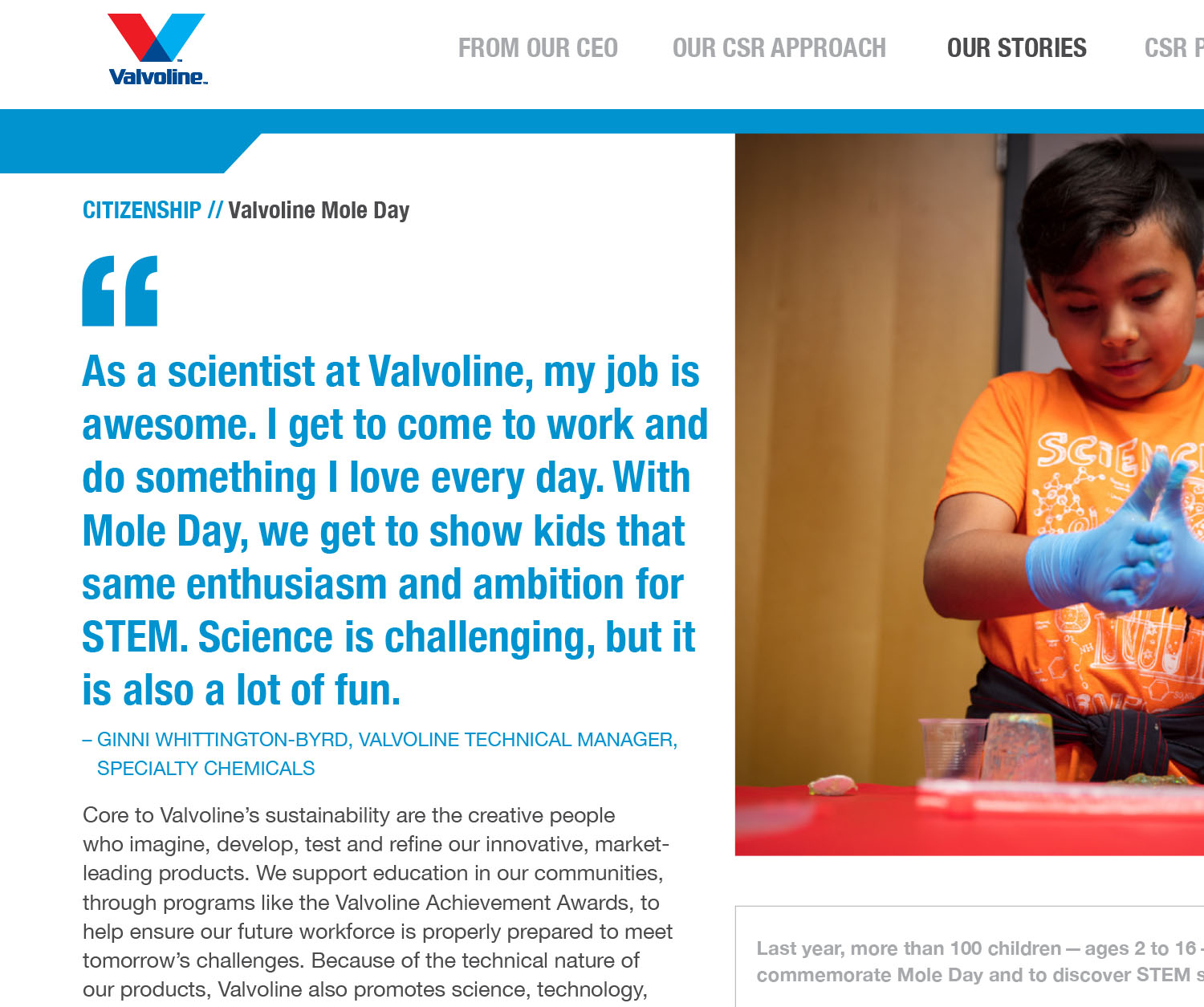 We developed a theme and narrative that emanated directly from Valvoline employees – and the stakeholders who have been positively impacted – for a more authentic tone.